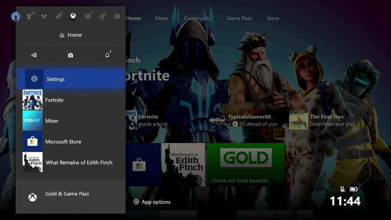 - Once done, simply click on the Xbox button at the top of the side menu and select Settings.